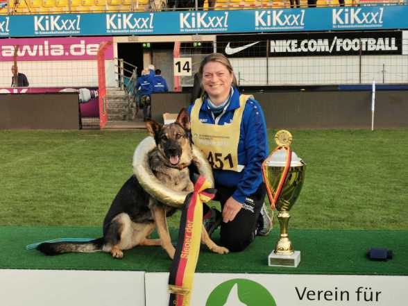 Mit meiner Baronesse von den Regensburger Donauauen startete ich erfolgreich auf der LGA Bayern Nord 2012 und holte den Vize-Sieg, der Bundessiegerprüfung daraufhin und auf der WUSV-Universal-WM 2013 wurden wir Vize-Weltmeister.